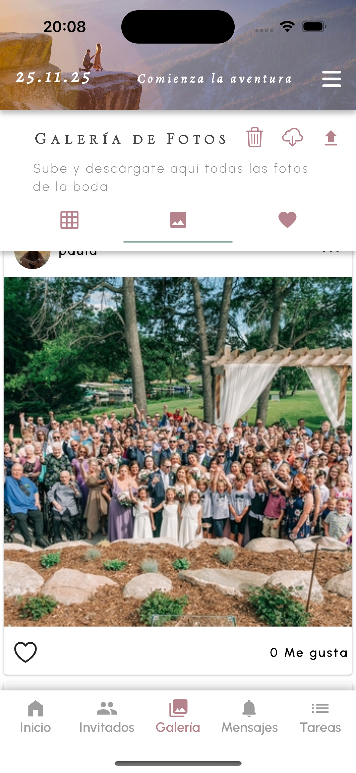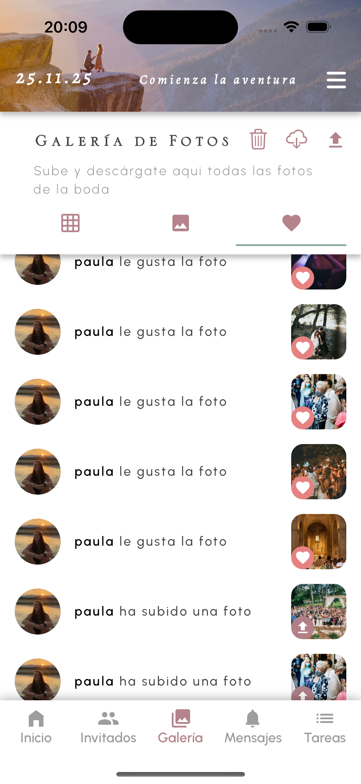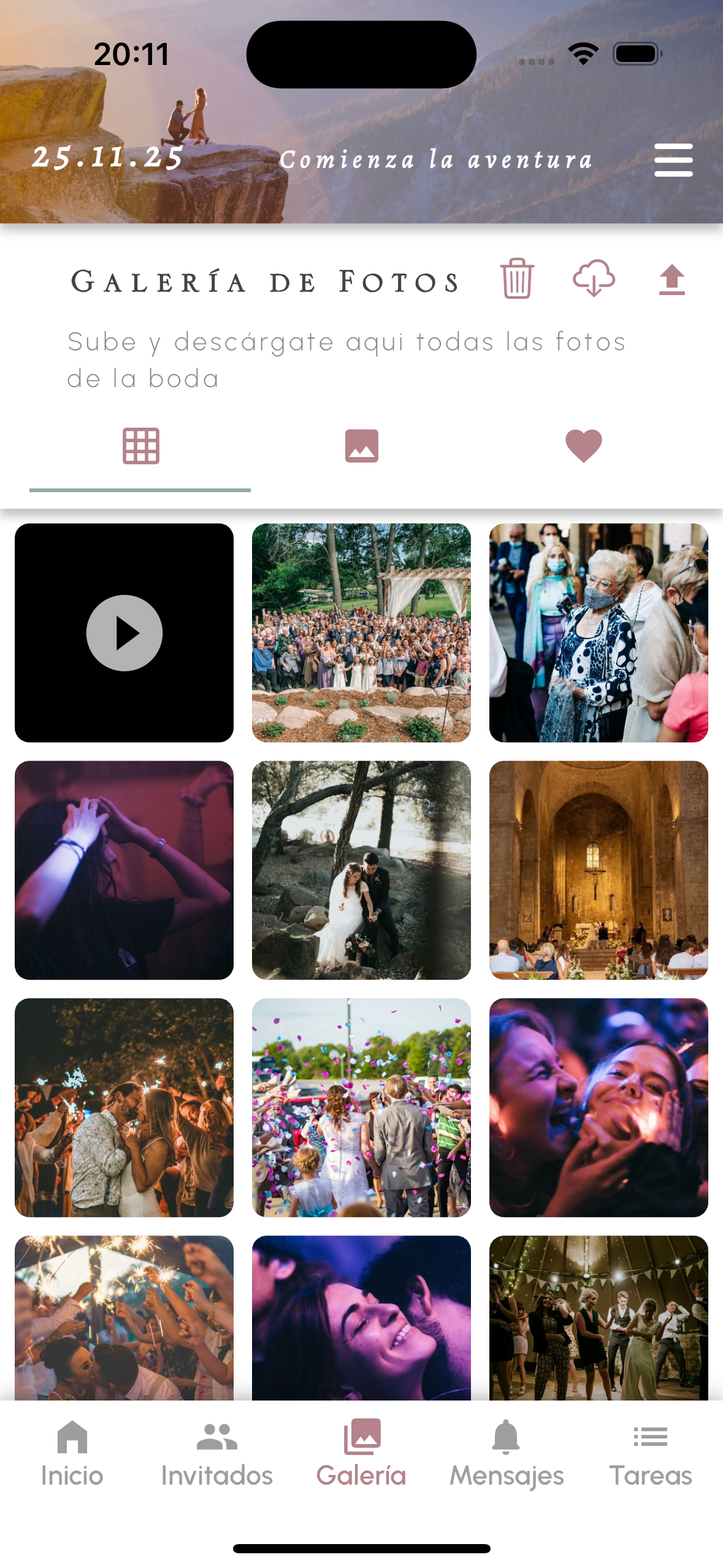 Desde el Inicio de la boda, pulsa en el botón Galería en el menú inferior.